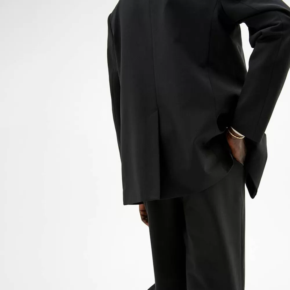 Dobbeltspent blazer designet i samarbeid med Studio Re-. Blazeren har en flatterende, rett og ledig passform. Med en splitt bak, og lommeklaffer foran. Jakken er laget av overskuddsmaterialer som ligger på lager etter større produksjoner- noe som sparer miljøet for å produsere nytt stoff. Style med matchende dressbukse, eller med jeans for en mer avslappet look.